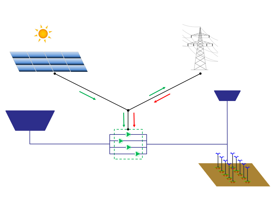 -Tot i que els mesos de màxima demanda hídrica coincideixen amb els mesos de màxima irradiació, s’estima en un 38 % l’energia produïda per les plantes fotovoltaiques (entre primavera, tardor i hivern) que no es aprofitada per les estacions de bombament, ja que es produïda en moments on no es rega o es rega amb poca intensitat.