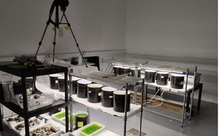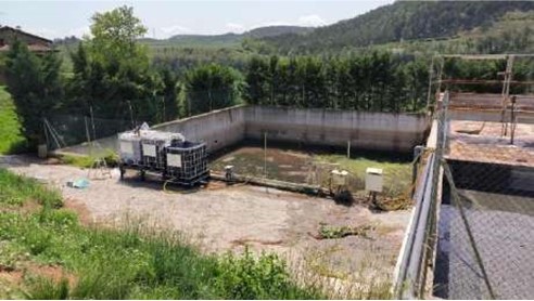 Fotografia del muntatge de l’experiment i de la instal·lació del projecte “Valorització de dejeccions ramaderes mitjançant el seu tractament amb plantes aquàtiques”