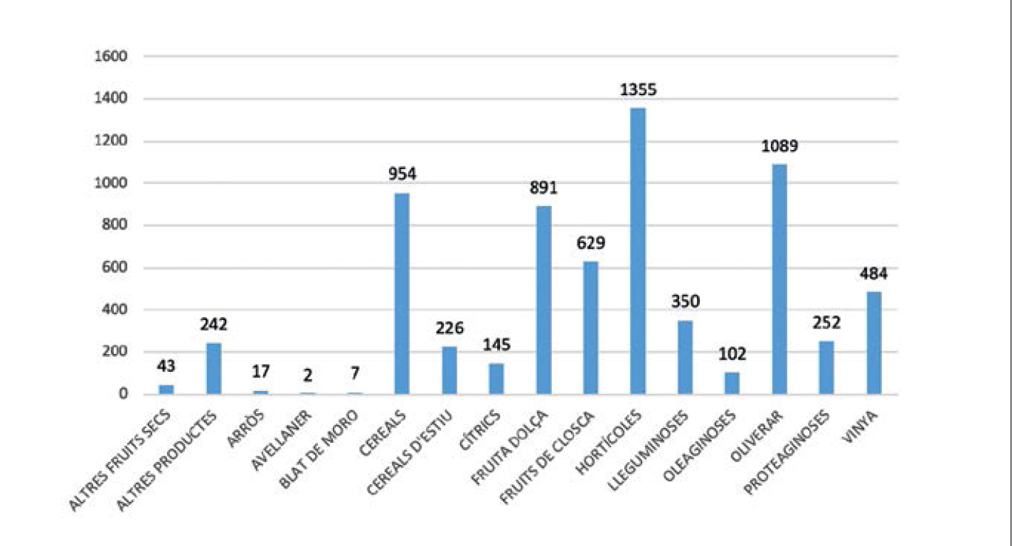 Productes primaris i nombre de productors (any 2020). Font: elaboració pròpia